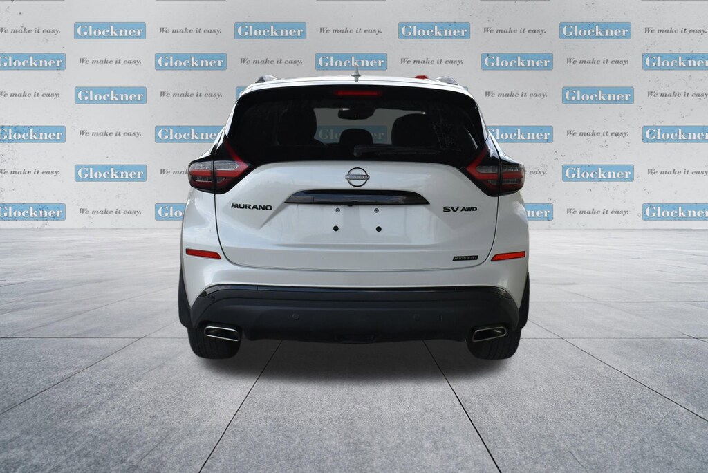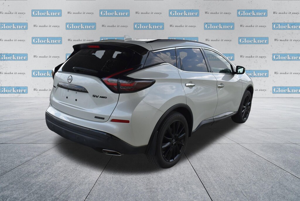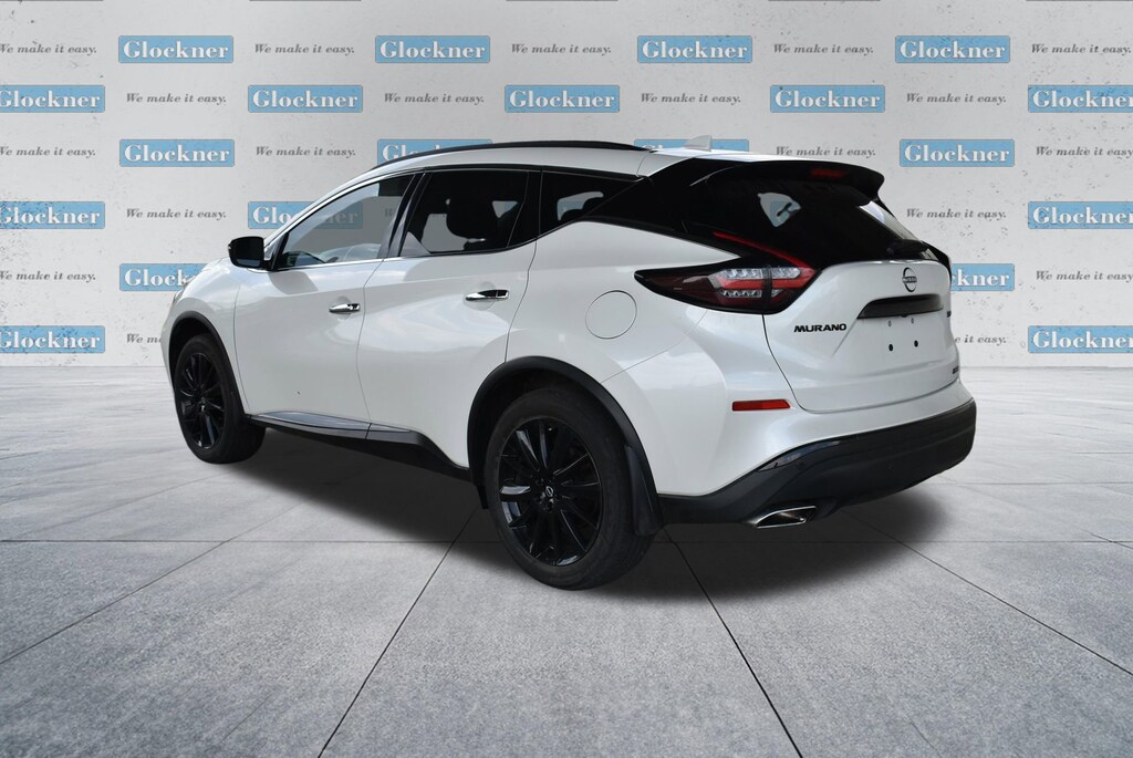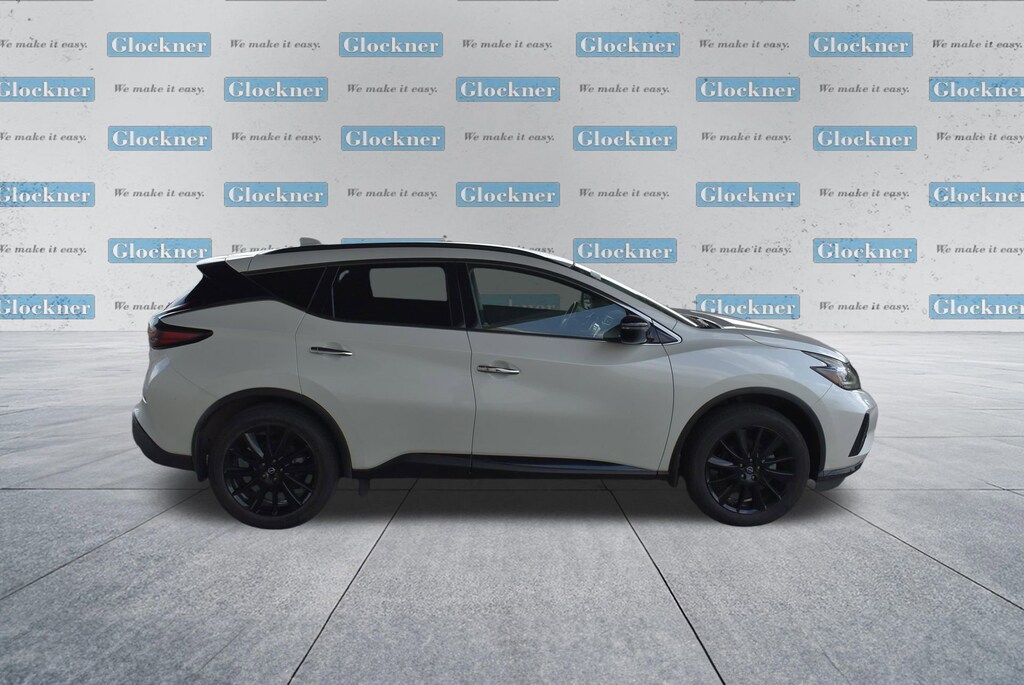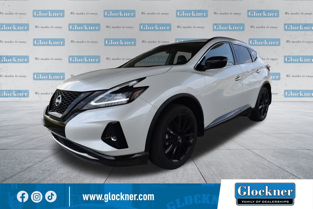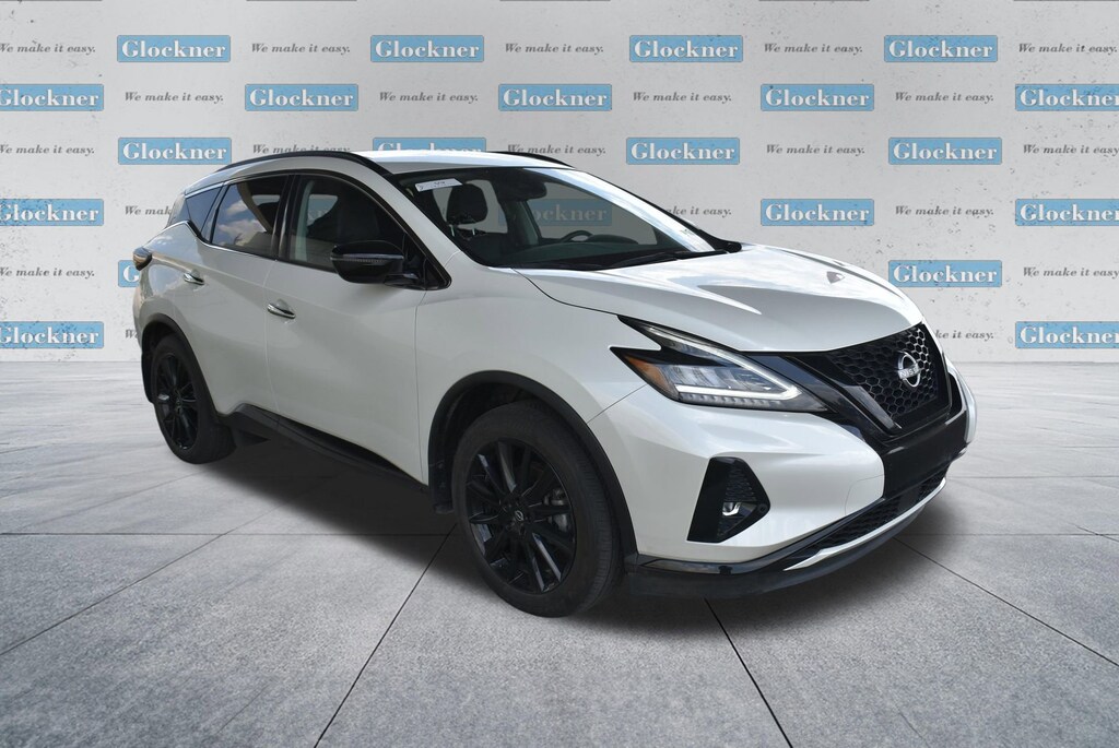 Glockner of Ironton is proud to offer this superb-looking 2023 Nissan Murano in Pearl White. This 2023 Nissan Murano has passed our comprehensive inspection and comes with the following features; Cargo Package (Cargo Area Protector, Cargo Net, First Aid Kit, and Retractable Cargo Cover), SV Midnight Edition Package (Black Splash Guards, Illuminated Kickplates, Midnight Edition Badge, and Wheels: 20 Gloss Black Aluminum Alloy), CVT with Xtronic, AWD, 4-Wheel Disc Brakes, 4.667 Axle Ratio, 6 Speakers, ABS brakes, Air Conditioning, Alloy wheels, AM/FM radio: SiriusXM, AM/FM/CD/MP3/WMA Audio System, Auto High-beam Headlights, Auto-dimming Rear-View mirror, Automatic temperature control, Blind Spot Warning, Brake assist, Bumpers: body-color, CD player, Child-Seat-Sensing Airbag, Delay-off headlights, Driver door bin, Driver vanity mirror, Dual front impact airbags, Dual front side impact airbags, Electronic Stability Control, Four wheel independent suspension, Front anti-roll bar, Front Bucket Seats, Front Center Armrest, Front dual zone A/C, Front fog lights, Front reading lights, Fully automatic headlights, Heated door mirrors, Heated Front Bucket Seats, Heated front seats, Illuminated entry, Knee airbag, Leatherette-Appointed Seat Trim, Low tire pressure warning, Midnight Edition Carpeted Floor Mats, Nissan USB Charging Cable Set, NissanConnect featuring Apple CarPlay and Android Auto, Occupant sensing airbag, Outside temperature display, Overhead airbag, Overhead console, Panic alarm, Passenger door bin, Passenger vanity mirror, Power door mirrors, Power driver seat, Power passenger seat, Power steering, Power windows, Radio data system, Rear anti-roll bar, Rear reading lights, Rear seat center armrest, Rear side impact airbag, Rear window defroster, Rear window wiper, Remote keyless entry, Security system, Speed control, Speed-sensing steering, Speed-Sensitive Wipers, Splash Guards & Illuminated Kick Plates, Split folding rear seat, Spoiler, Steering wheel mounted audio controls, Tachometer, Telescoping steering wheel, Tilt steering wheel, Traction control, Trip computer, Turn signal indicator mirrors, Variably intermittent wipers, and Wheels: 18 Machined Aluminum-Alloy.