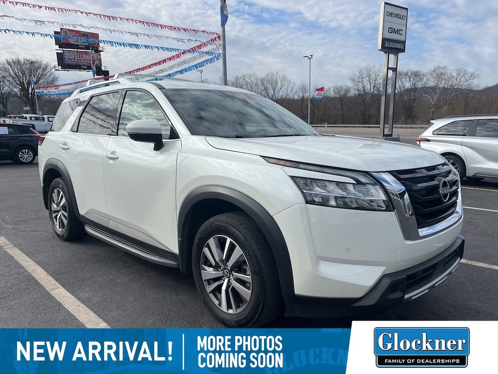 Glockner Chevrolet is proud to offer this gorgeous 2024 Nissan Pathfinder in Pearl White Tricoat. This 2024 Nissan Pathfinder has passed our comprehensive inspection and comes with the following features; Glockner Certified Certified, 4WD, Navigation system: NissanConnect with Navigation and Services, 3rd row seats: bench, 4-Wheel Disc Brakes, 6 Speakers, ABS brakes, Air Conditioning, Alloy wheels, AM/FM radio: SiriusXM, Auto High-beam Headlights, Auto-dimming Rear-View mirror, Automatic temperature control, Axle Ratio: 4.334, Bench Seat Carpeted Floor Mats (Set of 4), Black Splash Guards (Set of 4), Brake assist, Bumpers: body-color, Cross Bars, Delay-off headlights, Driver door bin, Driver vanity mirror, Dual front impact airbags, Dual front side impact airbags, Electronic Stability Control, Emergency communication system, Exterior Parking Camera Rear, Four wheel independent suspension, Front anti-roll bar, Front Bucket Seats, Front Center Armrest, Front dual zone A/C, Front reading lights, Fully automatic headlights, Garage door transmitter: HomeLink, Heated door mirrors, Heated Front Bucket Seats, Heated front seats, Heated steering wheel, Illuminated entry, Knee airbag, Leather steering wheel, Leather-Appointed Seating Surfaces, Low tire pressure warning, NissanConnect featuring Apple CarPlay and Android Auto, NissanConnect w/Navigation & Services, Occupant sensing airbag, Outside temperature display, Overhead airbag, Overhead console, Panic alarm, Passenger door bin, Passenger vanity mirror, Power door mirrors, Power driver seat, Power Liftgate, Power passenger seat, Power steering, Power windows, Radio data system, Radio: AM/FM Audio System, Rear air conditioning, Rear anti-roll bar, Rear reading lights, Rear seat center armrest, Rear side impact airbag, Rear window defroster, Rear window wiper, Reclining 3rd row seat, Remote keyless entry, Security system, Speed control, Speed-sensing steering, Split folding rear seat, Spoiler, Steering wheel mounted audio controls, Tachometer, Telescoping steering wheel, Tilt steering wheel, Traction control, Trip computer, Turn signal indicator mirrors, Variably intermittent wipers, and Wheels: 18 x 8J Machined Alloy.