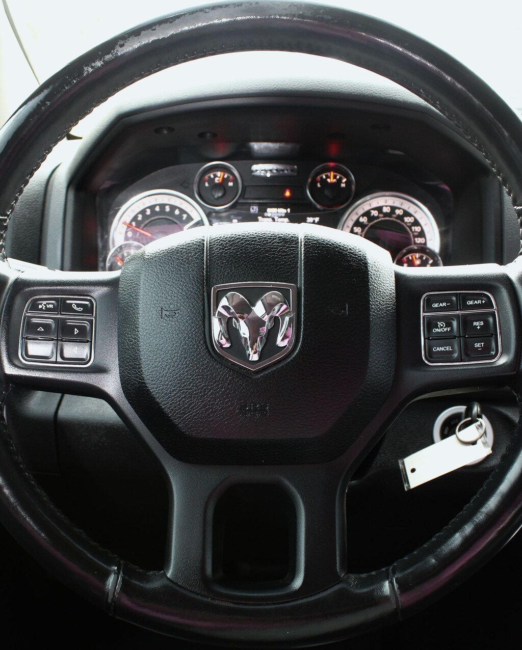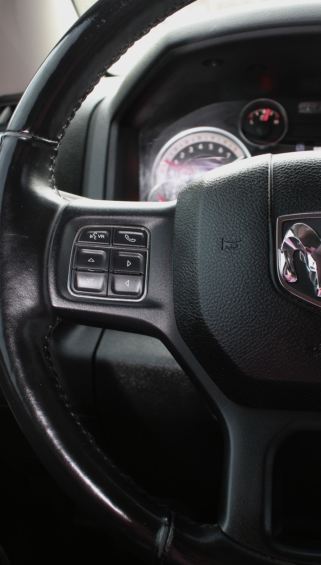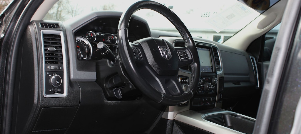 The interior of this Big Horn is packed with premium features, including a large 8.4-inch touchscreen display with Uconnect 4C navigation, SiriusXM satellite radio, and a premium audio system. The heated front seats and steering wheel keep you comfortable, while the RamBox cargo management system provides ample storage space for all your gear.