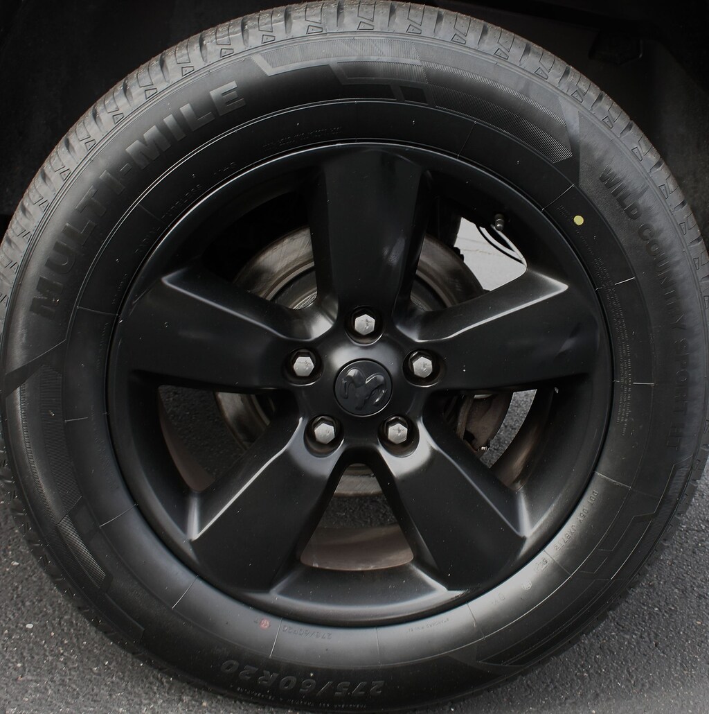 The exterior of this Ram 1500 is equally impressive, with a bold, muscular design that commands attention. The black exterior with chrome accents gives it a rugged, yet refined look, while the 20-inch semi-gloss black aluminum wheels add a touch of style.