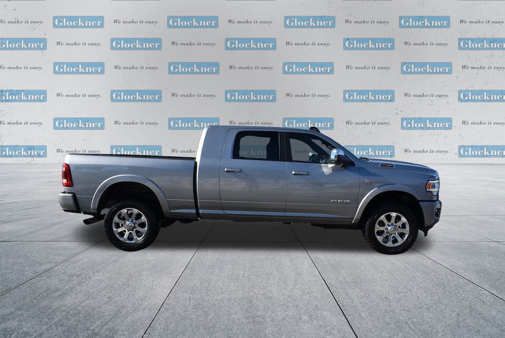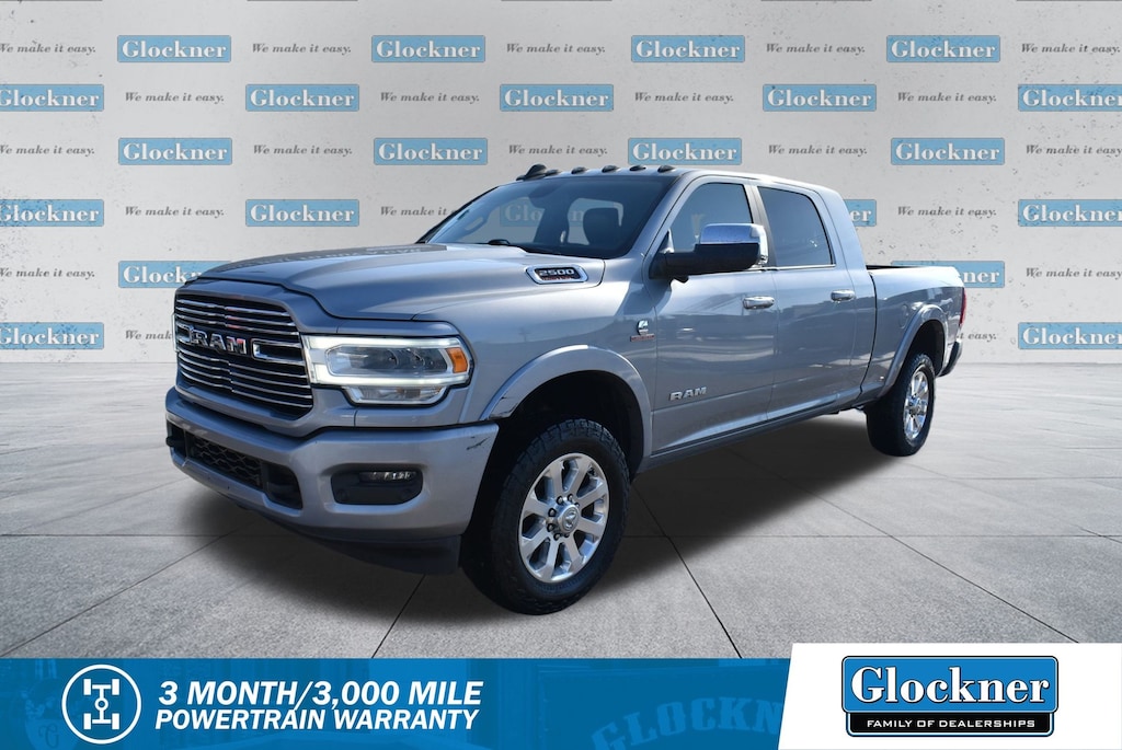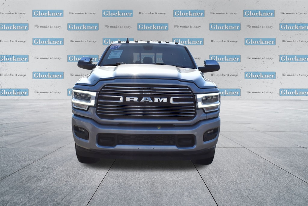 Glockner Chrysler Dodge Jeep Ram of Ashland is proud to offer this gorgeous 2019 Ram 2500 in Billet Silver Metallic Clearcoat. This 2019 Ram 2500 has passed our comprehensive inspection and comes with the following features; Cold Weather Group (Engine Block Heater and Winter Front Grille Cover), Heavy Duty Snow Plow Prep Group, Laramie Level 1 Equipment Group (Auto High Beam Headlamp Control, Blind Spot & Cross Path Detection, Exterior Mirrors w/Memory, Foam Bottle Insert (Door Trim Panel), Mirror-Mounted Aux Reverse Lamps, Power Adjustable Convex Aux Mirrors, Power Adjustable Pedals w/Memory, Pwr Convenience Chrome Tow Mirrors w/Spotter & Memory, Radio/Driver Seat/Mirrors/Pedals Memory, Rain Sensitive Windshield Wipers, Remote Tailgate Release, Single Disc Remote CD Player, and Ventilated Front Seats), Protection Group (Tow Hooks), Quick Order Package 2HH Laramie, Sport Appearance Package (Black Interior Accents, Body Color Door Handles, Body Color Grille Surround, Painted Front Bumper, Painted Rear Bumper, and Sport Decal), Towing Technology Group (Center Stop Lamp w/Cargo View Camera, Surround View Camera System, and Trailer Reverse Guidance), #1 Seat Foam Cushion, 10 Speakers, 115V Auxiliary Rear Power Outlet, 12" Touchscreen Display, 2 Way Rear Headrest Seat, 220 Amp Alternator, 3.73 Axle Ratio, 4 Way Front Headrests, 4-Wheel Disc Brakes, ABS brakes, Active Noise Control System, Adjustable pedals, Air Conditioning, Alloy wheels, AM/FM radio: SiriusXM, Anti-Spin Differential Rear Axle, Apple CarPlay, Apple CarPlay/Android Auto, Auto-dimming Rear-View mirror, Automatic temperature control, Brake assist, Bumpers: chrome, Center Hub, Clearance Lamps, Compass, Delay-off headlights, Driver door bin, Driver vanity mirror, Dual front impact airbags, Dual front side impact airbags, Electronic Stability Control, Electronically Controlled Throttle, Front anti-roll bar, Front Center Armrest w/Storage, Front dual zone A/C, Front fog lights, Front reading lights, Front Seat Back Map Pockets, Fully automatic headlights, Garage door transmitter, Google Android Auto, GPS Antenna Input, Heated door mirrors, Heated Front Seats, Heated front seats, Heated Steering Wheel, Heated steering wheel, High Back Seats, I/P Mounted Auxiliary Switches, Illuminated entry, Integrated Voice Command w/Bluetooth, Leather steering wheel, Leather Trim 40/20/40 Bench Seat, LED Bed Lighting, Low tire pressure warning, Occupant sensing airbag, Outside temperature display, Overhead airbag, Overhead console, Panic alarm, ParkSense Front/Rear Park Assist System, ParkView Rear Back-Up Camera, Passenger door bin, Passenger vanity mirror, Power 2-Way Driver Lumbar Adjust, Power 2-Way Passenger Lumbar Adjust, Power Adjust 8-Way Driver Seat, Power Adjust 8-Way Front Passenger Seat, Power door mirrors, Power driver seat, Power passenger seat, Power steering, Power windows, Radio data system, Radio: Uconnect 12 w/Navigation, Radio: Uconnect 4 w/8.4" Display, Rear 60/40 Folding Seat, Rear anti-roll bar, Rear reading lights, Rear seat center armrest, Rear step bumper, Rear window defroster, Remote keyless entry, Security system, Selectable Tire Fill Alert (DISC), SiriusXM Satellite Radio, SiriusXM w/360L, Speed control, Split folding rear seat, Steering wheel mounted audio controls, Tachometer, Tilt steering wheel, Tip Start, Tire Fill Alert (DISC), Traction control, Trip computer, Turn signal indicator mirrors, USB Host Flip, Variably intermittent wipers, Vendor Painted Cargo Box Tracking, Voltmeter, Wheels: 18" x 8.0" Polished Aluminum, and Wheels: 20" x 8.0" Painted Aluminum w/Chrome Inserts.