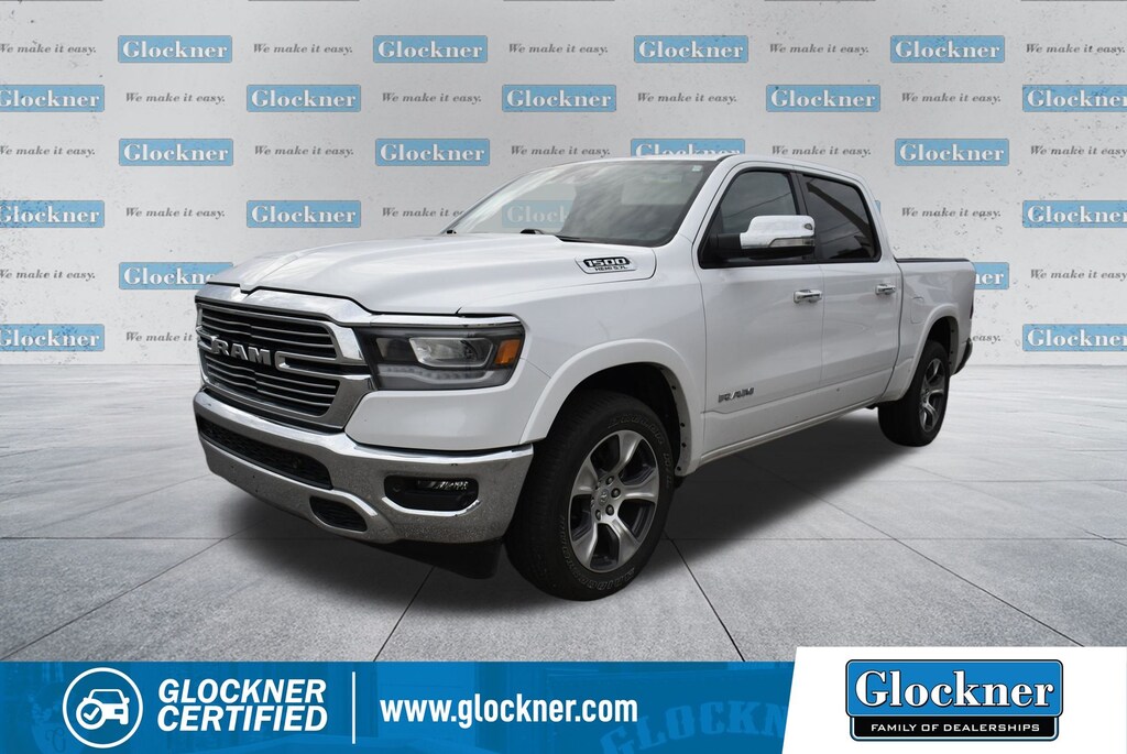 Glockner Chrysler Dodge Jeep Ram of Ashland is proud to offer this good-looking 2022 Ram 1500 in Bright White Clearcoat. This 2022 Ram 1500 has passed our comprehensive inspection and comes with the following features; Laramie Level I Equipment Group (2nd Row In Floor Storage Bins, Auto High Beam Headlamp Control, Blind Spot & Cross Path Detection, Foam Bottle Insert (Door Trim Panel), ParkSense Front/Rear Park Assist w/Stop, Rain Sensitive Windshield Wipers, and Remote Tailgate Release), Quick Order Package 25H Laramie, Glockner Certified Certified, #1 Seat Foam Cushion, 10 Speakers, 12" Touchscreen Display, 3 Rear Seat Head Restraints, 3.21 Rear Axle Ratio, 4 Way Front Headrests, 4-Wheel Disc Brakes, 48V Belt Starter Generator, 4G LTE Wi-Fi Hot Spot, 8.4" Touchscreen Display, ABS brakes, Adjustable pedals, Air Conditioning, All R1 High Radios, All Radio Equipped Vehicles, Alloy wheels, AM/FM radio: SiriusXM, Apple CarPlay, Apple CarPlay/Android Auto, Audio memory, Auto-dimming door mirrors, Auto-Dimming Exterior Driver Mirror, Auto-dimming Rear-View mirror, Automatic temperature control, Brake assist, Bumpers: chrome, Chrome Exterior Mirrors, Compass, Connected Travel & Traffic Services, Connectivity - US/Canada, Convex Wide-Angle Mirror Insert, Delay-off headlights, Disassociated Touchscreen Display, Driver door bin, Driver Seat Memory, Driver vanity mirror, Dual front impact airbags, Dual front side impact airbags, Electronic Stability Control, Exterior Mirrors Courtesy Lamps, Exterior Mirrors w/Heating Element, Exterior Mirrors w/Memory, Exterior Mirrors w/Supplemental Signals, For Details, Visit DriveUconnect.com, For More Info, Call 800-643-2112, Front anti-roll bar, Front Center Armrest w/Storage, Front dual zone A/C, Front fog lights, Front reading lights, Front Seat Back Map Pockets, Front wheel independent suspension, Fully automatic headlights, Garage door transmitter, Global Telematics Box Module (TBM), Google Android Auto, GPS Antenna Input, GPS Navigation, HD Radio, Heated door mirrors, Heated Front Seats, Heated front seats, Heated Steering Wheel, Heated steering wheel, Illuminated entry, Integrated Center Stack Radio, Integrated Voice Command w/Bluetooth, Leather steering wheel, Leather Trim 40/20/40 Bench Seat, Low tire pressure warning, Memory seat, MOPAR Front & Rear Rubber Floor Mats, Occupant sensing airbag, Outside temperature display, Overhead airbag, Overhead console, Panic alarm, ParkView Rear Back-Up Camera, Passenger door bin, Passenger vanity mirror, Pedal memory, Power 2-Way Driver Lumbar Adjust, Power 2-Way Passenger Lumbar Adjust, Power 8-Way Driver & Passenger Seats, Power door mirrors, Power driver seat, Power passenger seat, Power steering, Power windows, Power-Folding Mirrors, Radio data system, Radio: Uconnect 5 Nav w/12.0" Display, Radio: Uconnect 5 W w/8.4" Display, Rear 60/40 Folding Seat, Rear anti-roll bar, Rear seat center armrest, Rear step bumper, Rear Underseat Compartment Storage (DISC), Rear Wheelhouse Liners, Rear window defroster, Remote keyless entry, Security system, SiriusXM Radio Service, SiriusXM w/360L, Speed control, Split folding rear seat, Steering wheel mounted audio controls, Tachometer, Telescoping steering wheel, Tilt steering wheel, Traction control, Trailer Brake Control, Trip computer, Turn signal indicator mirrors, USB Host Flip, Variably intermittent wipers, Ventilated Front Seats, Ventilated front seats, Voltmeter, Wheels: 18" x 8" Aluminum Base Painted, and Wheels: 20" x 9" Premium Paint/PolisheD.