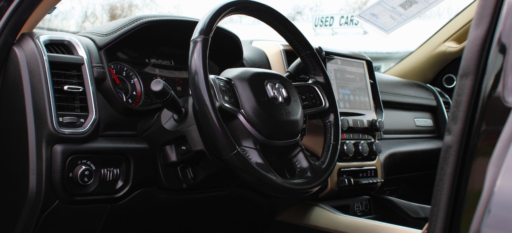 Elevate your driving experience with the Laramie's premium amenities, including a 17-speaker harman/kardon audio system, Alexa Built-In, and an 8.4-inch Uconnect 5 navigation display. Stay connected and informed with SiriusXM 360L, HD Radio, and GPS navigation. Enjoy the convenience of power-adjustable pedals, memory settings for the driver's seat and mirrors, and a remote tailgate release.