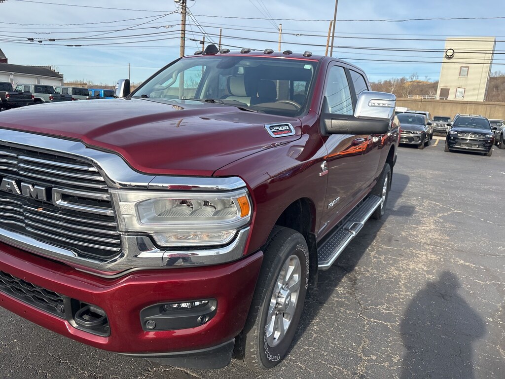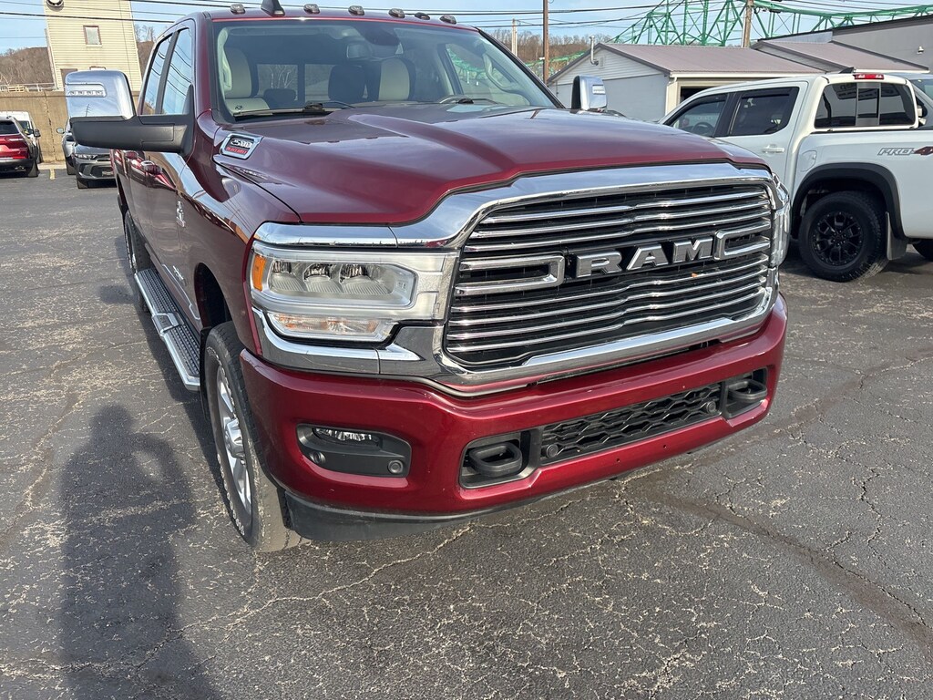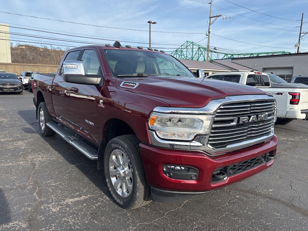 Glockner Chrysler Dodge Jeep Ram of Ashland is proud to offer this fantastic-looking 2023 Ram 2500 in Delmonico Red Pearlcoat. This 2023 Ram 2500 has passed our comprehensive inspection and comes with the following features; Heavy Duty Snow Plow Prep Group (220 Amp Alternator), Laramie Level 1 Equipment Group (12" Touchscreen Display, 2nd Row In Floor Storage Bins, 4G LTE Wi-Fi Hot Spot, Alexa Built-In, Apple CarPlay, Auto Adjust In Reverse Exterior Mirrors, Auto Dim Exterior Mirror, Auto High Beam Headlamp Control, Auto Power-Folding Mirrors, Auto-Dimming Exterior Passenger Mirror, Blind Spot & Cross Path Detection, Chrome Exterior Mirrors, Connected Travel & Traffic Services, Connectivity - US/Canada, Disassociated Touchscreen Display, Exterior Mirrors Courtesy Lamps, Exterior Mirrors w/Heating Element, Exterior Mirrors w/Memory, Exterior Mirrors w/Supplemental Signals, Foam Bottle Insert (Door Trim Panel), For Details, Visit DriveUconnect.com, For More Info, Call 800-643-2112, Forward & Reverse Utility Lights, Front LED Fog Lamps, Global Telematics Box Module (TBM), Google Android Auto, GPS Antenna Input, GPS Navigation, HD Radio, Integrated Voice Command w/Bluetooth, LED Reflector Headlamps, Mirror Running Lights, Off-Road Information Pages, ParkSense Front/Rear Park Assist System, Power Adjust Mirrors, Power Adjustable Convex Aux Mirrors, Power Adjustable Pedals w/Memory, Power Heated Fold Telescopic Mirrors w/Memory, Power Telescoping Mirrors, Radio: Uconnect 5 Nav w/12.0" Display, Radio/Driver Seat/Mirrors/Pedals Memory, Rain Sensitive Windshield Wipers, Rear Power Sliding Window, Rear Window Defroster, Remote Tailgate Release, Selectable Tire Fill Alert, SiriusXM Radio Service, SiriusXM w/360L, and Trailer Tow Pages), Quick Order Package 2HH Laramie, FCA US LLC Certified Pre-Owned Certified, 10 Speakers, 115V Auxiliary Rear Power Outlet, 2 Way Rear Headrest Seat, 20" x 8.0" Polished Aluminum Wheels, 3.73 Axle Ratio, 4 Way Front Headrests, 4-Wheel Disc Brakes, ABS brakes, Active Noise Control System, Air Conditioning, Alloy wheels, AM/FM radio: SiriusXM with 360L, Anti-Spin Differential Rear Axle, Apple CarPlay/Android Auto, Auto-dimming Rear-View mirror, Automatic temperature control, Brake assist, Bumpers: body-color, Center Hub, Chrome Flat Wheel-to-Wheel Side Steps, Clearance Lamps, Compass, Delay-off headlights, Driver door bin, Driver vanity mirror, Dual front impact airbags, Dual front side impact airbags, Electronic Stability Control, Electronically Controlled Throttle, Front anti-roll bar, Front Center Armrest w/Storage, Front dual zone A/C, Front License Plate Bracket, Front reading lights, Front Seat Back Map Pockets, Fully automatic headlights, Garage door transmitter, Heated door mirrors, Heated Front Seats, Heated front seats, Heated Steering Wheel, Heated steering wheel, Illuminated entry, Leather steering wheel, Leather Trim 40/20/40 Bench Seat, Low tire pressure warning, MOPAR Front & Rear Rubber Floor Mats, MOPAR Spray In Bedliner, Navigation System, Occupant sensing airbag, Outside temperature display, Overhead airbag, Overhead console, Panic alarm, ParkView Rear Back-Up Camera, Passenger door bin, Passenger vanity mirror, Power 2-Way Driver Lumbar Adjust, Power 2-Way Passenger Lumbar Adjust, Power Adjust 8-Way Driver Seat, Power Adjust 8-Way Front Passenger Seat, Power door mirrors, Power driver seat, Power passenger seat, Power steering, Power windows, Radio data system, Radio: Uconnect 5 Nav w/8.4" Display, Rear 60/40 Folding Seat, Rear anti-roll bar, Rear reading lights, Rear seat center armrest, Rear step bumper, Rear window defroster, Remote keyless entry, Security system, Speed control, Split folding rear seat, Steering wheel mounted audio controls, Tachometer, Tilt steering wheel, Tip Start, Tow Hooks, Traction control, Trip computer, Turn signal indicator mirrors, Variably intermittent wipers, Vendor Painted Cargo Box, Vendor Painted Cargo Box Tracking, Voltmeter, and Wheels: 18" x 8.0" Polis