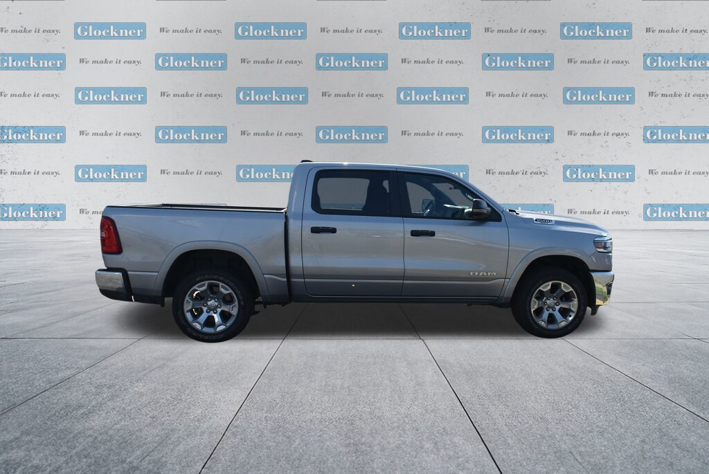Glockner of Ironton is proud to offer this charming-looking 2025 Ram 1500 in Billet Silver Metallic Clearcoat. This 2025 Ram 1500 has passed our comprehensive inspection and comes with the following features; Big Horn Level 1 Equipment Group (115V Auxiliary Power Outlet, 2nd Row In Floor Storage Bins, 400W Inverter, Auto Power-Folding Mirrors, Auto-Dimming Exterior Driver Mirror, Auto-Dimming Rear-View Mirror, Black Exterior Mirrors, Black Premium Power Mirrors, Convex Wide-Angle Exterior Mirror Insert, Exterior Mirrors Courtesy Lamps, Exterior Mirrors w/Heating Element, Exterior Mirrors w/Supplemental Signals, Glove Box Lamp, Heated Front Seats, Heated Steering Wheel, Leather Wrapped Steering Wheel, Power 2-Way Driver Lumbar Adjust, Power Adjust 8-Way Driver Seat, Power Adjustable Pedals, Rear Power Sliding Window, Rear Window Defroster, Steering Wheel Mounted Audio Controls, Sun Visors w/Illuminated Vanity Mirrors, and Universal Garage Door Opener), Quick Order Package 21Z Big Horn, Glockner Certified Certified, 3 Rear Seat Head Restraints, 3.21 Rear Axle Ratio, 3.55 Rear Axle Ratio, 4 Way Front Headrests, 4-Wheel Disc Brakes, 4G LTE Wi-Fi Hot Spot, 6 Speakers, ABS brakes, Air Conditioning, Alloy wheels, AM/FM radio, Apple CarPlay/Android Auto, Auto High-beam Headlights, Brake assist, Bumpers: chrome, Cloth Bench Seat, Compass, Connectivity - US/Canada, Delay-off headlights, Driver door bin, Dual front impact airbags, Dual front side impact airbags, Electronic Stability Control, Front anti-roll bar, Front Center Armrest w/Storage, Front fog lights, Front reading lights, Front Seat Back Map Pockets, Front wheel independent suspension, Fully automatic headlights, GPS Antenna Input, Heated door mirrors, Illuminated entry, Integrated Voice Command w/Bluetooth, Low tire pressure warning, Manual Adjust 4-Way Front Passenger Seat, Manual Folding Exterior Mirrors, MOPAR Front & Rear Rubber Floor Mats, Occupant sensing airbag, Outside temperature display, Overhead airbag, Overhead console, Panic alarm, ParkView Rear Back-Up Camera, Passenger door bin, Passenger vanity mirror, Power door mirrors, Power steering, Power windows, Radio data system, Radio: Uconnect 5 W w/8.4 Display, RAM Grille Badge - Chrome, Rear 60/40 Folding Seat, Rear anti-roll bar, Rear seat center armrest, Rear step bumper, Remote keyless entry, Speed control, Split folding rear seat, Supplier Part Tracking (J-1), Tachometer, Telescoping steering wheel, Tilt steering wheel, Traction control, Trip computer, USB Host Flip, Variably intermittent wipers, Voltmeter, Wheels: 18 x 8 Cast-Aluminum Painted, and Wheels: 20 x 9 Aluminum Chrome Clad (WRK)