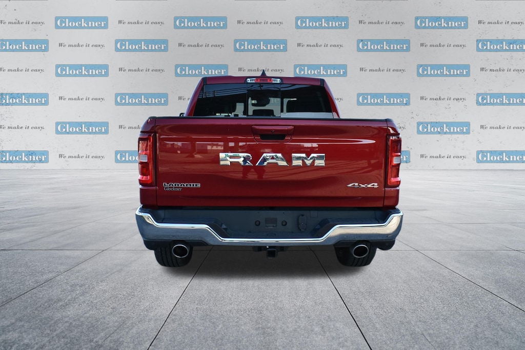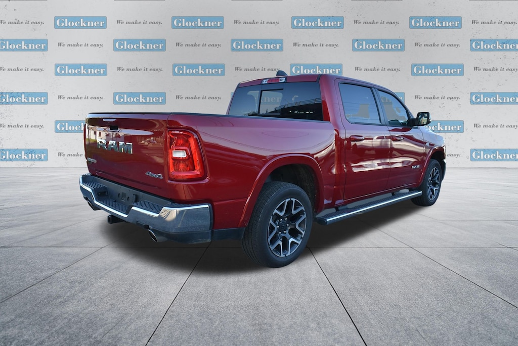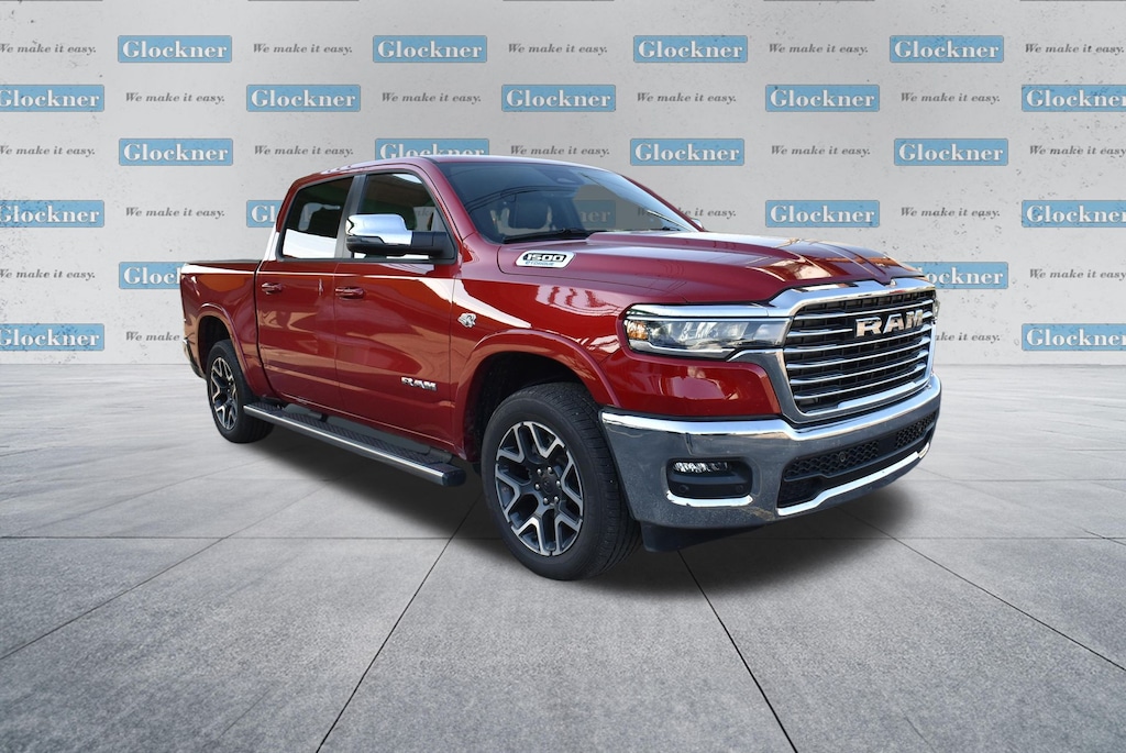 Glockner Chrysler Dodge Jeep Ram of Ashland is proud to offer this wonderful 2026 Ram 1500 in Molten Red Pearlcoat. This 2026 Ram 1500 has passed our comprehensive inspection and comes with the following features; Laramie Level 2 Equipment Group (14.4" Touchscreen Display, 4G LTE Wi-Fi Hot Spot, Cluster 12" TFT Color Display, Connected Travel and Traffic Services, Connectivity - US/Canada, Front Passenger Interactive Display, GPS Navigation, Harman/Kardon 19 Speaker Premium Sound, Integrated Center Stack Radio, Integrated Voice Command with Bluetooth, Power Tailgate, Radio: Uconnect 5 Nav with 14.4" Display, Rain Sensitive Windshield Wipers, SiriusXM Radio Service, SiriusXM with 360L, and USB Host Flip), Quick Order Package 27H Laramie, Glockner Certified Certified, 10 Speakers, 3.55 Rear Axle Ratio, 3.92 Rear Axle Ratio, 4-Wheel Disc Brakes, ABS brakes, Active Noise Control System, Adjustable pedals, Air Conditioning, Alloy wheels, AM/FM radio: SiriusXM with 360L, Apple CarPlay/Android Auto, Audio memory, Auto High-beam Headlights, Auto Power-Folding Mirrors, Auto-dimming door mirrors, Auto-Dimming Exterior Driver Mirror, Auto-dimming Rear-View mirror, Automatic temperature control, Brake assist, Bumpers: chrome, Chrome Exterior Mirrors, Compass, Convex Wide-Angle Exterior Mirror Insert, Delay-off headlights, Dome Dual LED Reading Lamp, Driver door bin, Driver vanity mirror, Dual front impact airbags, Dual front side impact airbags, Dual-Pane Panoramic Sunroof, Electronic Stability Control, Exterior Mirrors Courtesy Lamps, Exterior Mirrors with Heating Element, Exterior Mirrors with Memory, Exterior Mirrors with Supplemental Signals, Front anti-roll bar, Front Bucket Seats, Front Center Armrest w/Storage, Front dual zone A/C, Front fog lights, Front License Plate Bracket, Front reading lights, Front wheel independent suspension, Fully automatic headlights, Garage door transmitter, Heated door mirrors, Heated front seats, Heated rear seats, Heated steering wheel, Illuminated entry, Leather steering wheel, Leather Trimmed Bucket Seats, LED Dome/Reading Lamp, Low tire pressure warning, Manufacturer's Statement of Origin, Memory seat, MOPAR Front and Rear Rubber Floor Mats, Navigation System, Occupant sensing airbag, Off-Road Information Pages, Outside temperature display, Overhead airbag, Overhead console, Panic alarm, ParkView Rear Back-Up Camera, Passenger door bin, Passenger vanity mirror, Pedal memory, Power door mirrors, Power driver seat, Power passenger seat, Power steering, Power windows, Radio data system, Radio: Uconnect 5 Navigation with 12.0" Display, RAM Grille Badge - Chrome, Rear anti-roll bar, Rear reading lights, Rear seat center armrest, Rear step bumper, Rear Wheelhouse Liners, Remote keyless entry, Security system, Speed control, Split folding rear seat, Steering wheel mounted audio controls, Tachometer, Telescoping steering wheel, Tilt steering wheel, Traction control, Trailer Brake Control, Trip computer, Turn signal indicator mirrors, Variably intermittent wipers, Ventilated front seats, Voltmeter, and Wheels: 20" x 9" Premium Paint/Polish.