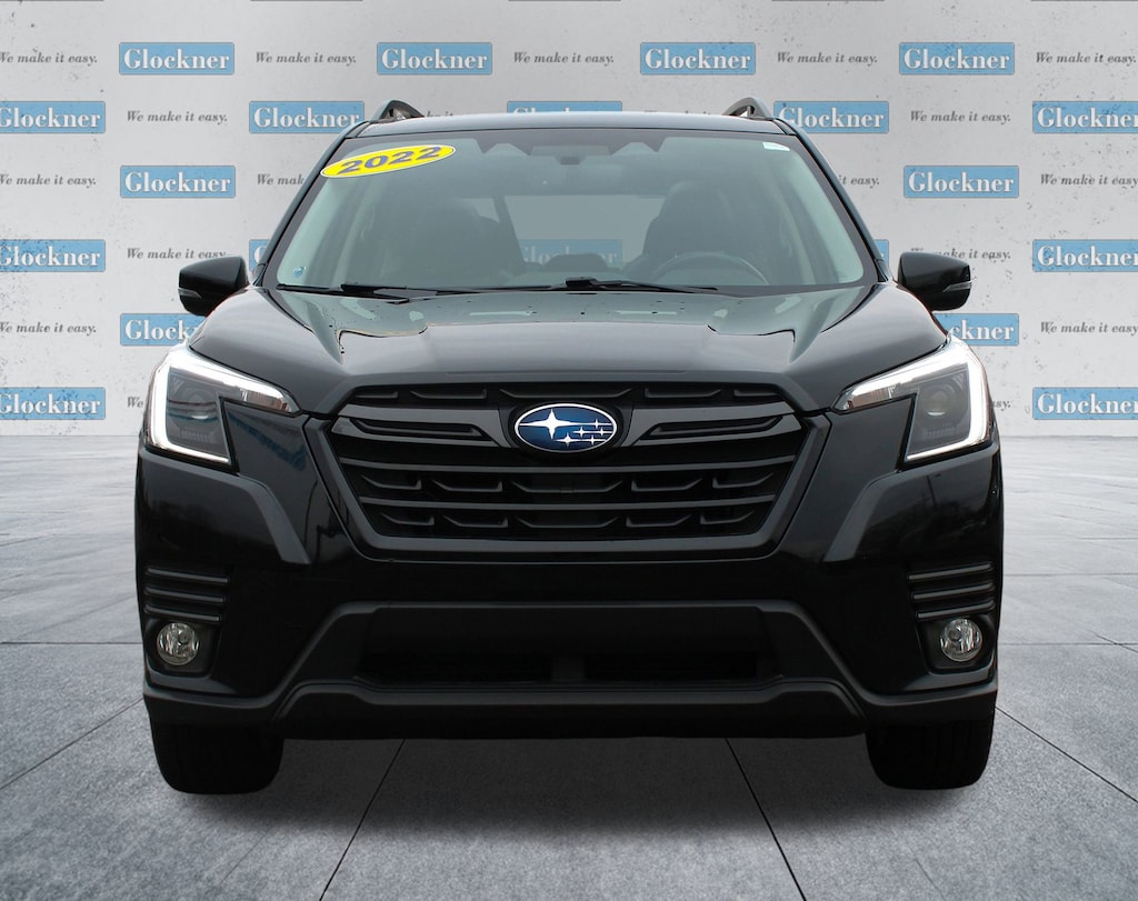 Glockner Chevrolet is proud to offer this handsome 2022 Subaru Forester in Crystal Black Silica. This 2022 Subaru Forester has passed our comprehensive inspection and comes with the following features; Nav & harman/kardon & RAB & Heated Steering Wheel (harman/kardon 576W Amp & Speaker System, Heated Steering Wheel, Radio: Subaru Starlink 8.0 Multimedia Nav System, and Reverse Automatic Braking System (RAB)), Popular Package #2 (All-Weather Floor Liners, Auto-Dimming Exterior Mirror w/Approach Lighting, Auto-Dimming Mirror w/Compass & HomeLink, Cargo Net, and Rear Bumper Cover), Glockner Certified Certified, Navigation System, 3.70 Axle Ratio, 4-Wheel Disc Brakes, 6 Speakers, ABS brakes, Air Conditioning, Alloy wheels, AM/FM radio: SiriusXM, Anti-whiplash front head restraints, Auto High-beam Headlights, Automatic temperature control, Brake assist, Bumpers: body-color, Cargo Sidewall Protector, CD player, Driver door bin, Driver vanity mirror, Dual front impact airbags, Dual front side impact airbags, Electronic Stability Control, Emergency communication system: STARLINK Safety and Security (Subscription Required), Exterior Parking Camera Rear, Four wheel independent suspension, Front anti-roll bar, Front Bucket Seats, Front Center Armrest, Front dual zone A/C, Front fog lights, Front reading lights, Fully automatic headlights, Heated door mirrors, Heated Front Bucket Seats, Heated front seats, Illuminated entry, Knee airbag, Leather Shift Knob, Low tire pressure warning, Occupant sensing airbag, Outside temperature display, Overhead airbag, Overhead console, Panic alarm, Passenger door bin, Passenger vanity mirror, Perforated Leather-Trimmed Upholstery, Power door mirrors, Power driver seat, Power Liftgate, Power moonroof: Panoramic, Power steering, Power windows, Radio data system, Radio: Subaru Starlink 8.0 Multimedia Plus System, Rear anti-roll bar, Rear seat center armrest, Rear Seatback Protector, Rear window defroster, Rear window wiper, Remote keyless entry, Roof rack: rails only, Security system, Speed control, Speed-sensing steering, Splash Guards, Split folding rear seat, Spoiler, STARLINK/Apple CarPlay/Android Auto, Steering wheel mounted audio controls, Sunshade - Windshield, Tachometer, Telescoping steering wheel, Tilt steering wheel, Traction control, Trip computer, Turn signal indicator mirrors, Variably intermittent wipers, and Wheels: 18 x 7.0J Black Machine Finish Alum Alloy.