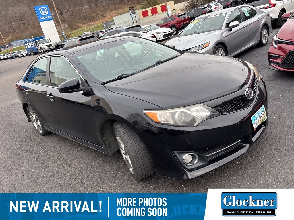 Glockner Honda Toyota is proud to offer this gorgeous 2014 Toyota Camry in Attitude Black Metallic. This 2014 Toyota Camry has passed our comprehensive inspection and comes with the following features; Black w/SofTex Seat Trim, 4-Wheel Disc Brakes, 6 Speakers, 7.0J x 17" Alloy Wheels, ABS brakes, Air Conditioning, Alloy wheels, AM/FM radio, Brake assist, Bumpers: body-color, CD player, Delay-off headlights, Driver door bin, Driver vanity mirror, Dual front impact airbags, Dual front side impact airbags, Electronic Stability Control, Four wheel independent suspension, Front anti-roll bar, Front Bucket Seats, Front Center Armrest, Front fog lights, Front reading lights, Front Sport Bucket Seats, Fully automatic headlights, Heated door mirrors, Illuminated entry, Knee airbag, Leather Shift Knob, Low tire pressure warning, Occupant sensing airbag, Outside temperature display, Overhead airbag, Overhead console, Panic alarm, Passenger door bin, Passenger vanity mirror, Power door mirrors, Power steering, Power windows, Radio: AM/FM/CD Player w/6.1" Touch Screen, Rear anti-roll bar, Rear seat center armrest, Rear side impact airbag, Rear window defroster, Remote keyless entry, SofTex Seat Trim, Speed control, Speed-sensing steering, Split folding rear seat, Spoiler, Steering wheel mounted audio controls, Tachometer, Telescoping steering wheel, Tilt steering wheel, Traction control, Trip computer, and Variably intermittent wipers.