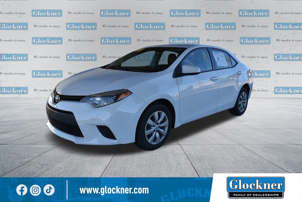 Glockner of Ironton is proud to offer this wonderful-looking 2014 Toyota Corolla in Super White. This 2014 Toyota Corolla has passed our comprehensive inspection and comes with the following features; 15 x 6.0 Steel Wheels, 4 Speakers, ABS brakes, Air Conditioning, AM/FM radio, AM/FM/CD Player, Brake assist, Bumpers: body-color, CD player, Delay-off headlights, Driver door bin, Driver vanity mirror, Dual front impact airbags, Dual front side impact airbags, Electronic Stability Control, Fabric Seat Trim, Front anti-roll bar, Front Bucket Seats, Front Center Armrest w/Storage, Front reading lights, Front wheel independent suspension, Illuminated entry, Knee airbag, Low tire pressure warning, Occupant sensing airbag, Outside temperature display, Overhead airbag, Passenger door bin, Passenger vanity mirror, Power door mirrors, Power steering, Power windows, Rear anti-roll bar, Rear window defroster, Speed-sensing steering, Split folding rear seat, Tachometer, Telescoping steering wheel, Tilt steering wheel, Traction control, and Trip computer.