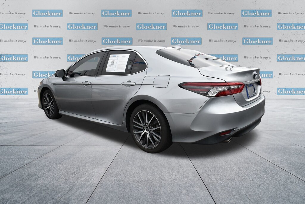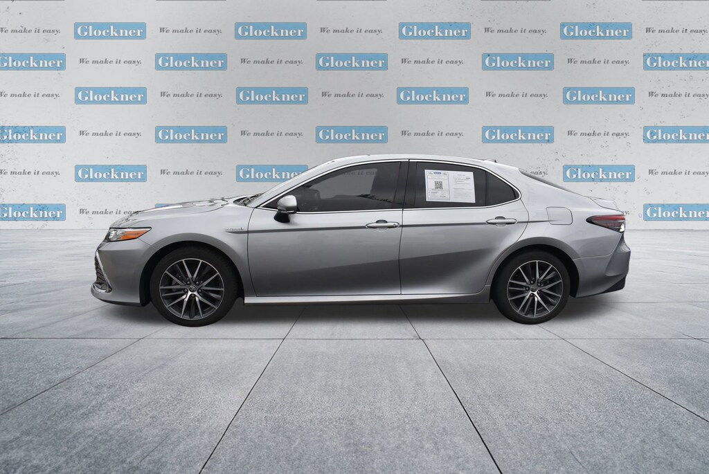Glockner of Ironton is proud to offer this stunning 2021 Toyota Camry Hybrid in Celestial Silver Metallic. This 2021 Toyota Camry Hybrid has passed our comprehensive inspection and comes with the following features; 2.5L I4 DOHC 16V, 4-Wheel Disc Brakes, 6 Speakers, ABS brakes, Air Conditioning, Alloy wheels, AM/FM radio: SiriusXM, Apple CarPlay/Android Auto, Auto High-beam Headlights, Auto-dimming Rear-View mirror, Automatic temperature control, Brake assist, Bumpers: body-color, Delay-off headlights, Driver door bin, Driver vanity mirror, Dual front impact airbags, Dual front side impact airbags, Electronic Stability Control, Emergency communication system: Safety Connect with 1-year trial, Exterior Parking Camera Rear, Four wheel independent suspension, Front anti-roll bar, Front Bucket Seats, Front Center Armrest, Front dual zone A/C, Front reading lights, Fully automatic headlights, Garage door transmitter: HomeLink, Heated door mirrors, Heated front seats, Illuminated entry, Knee airbag, Low tire pressure warning, Multi-Stage Heated Front Bucket Seats, Occupant sensing airbag, Outside temperature display, Overhead airbag, Overhead console, Panic alarm, Passenger door bin, Passenger vanity mirror, Perforated Leather Seat Trim, Power door mirrors, Power driver seat, Power passenger seat, Power steering, Power windows, Radio data system, Radio: AM/FM/HD Audio Plus, Rear anti-roll bar, Rear reading lights, Rear seat center armrest, Rear side impact airbag, Rear window defroster, Remote keyless entry, Security system, Speed control, Speed-sensing steering, Split folding rear seat, Steering wheel mounted audio controls, Telescoping steering wheel, Tilt steering wheel, Traction control, Trip computer, Turn signal indicator mirrors, Variably intermittent wipers, and Wheels: 8.0J x 18 Machined Finish Alloy.