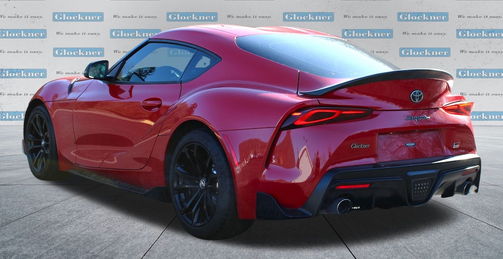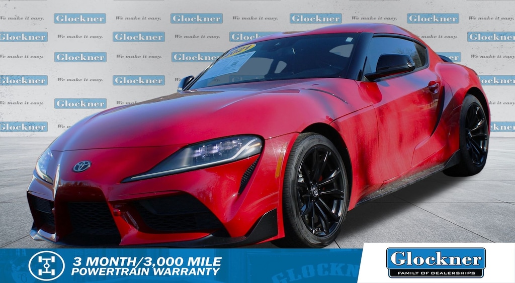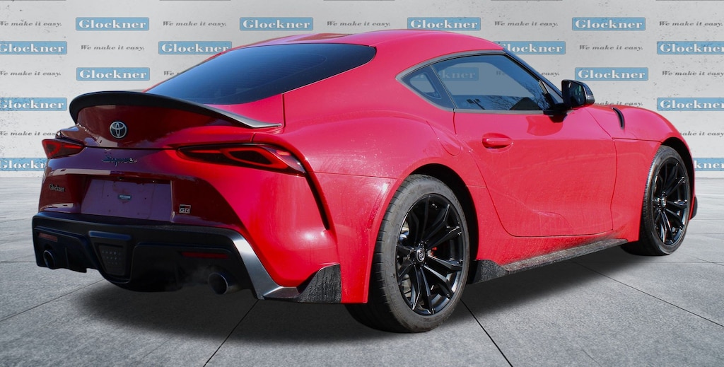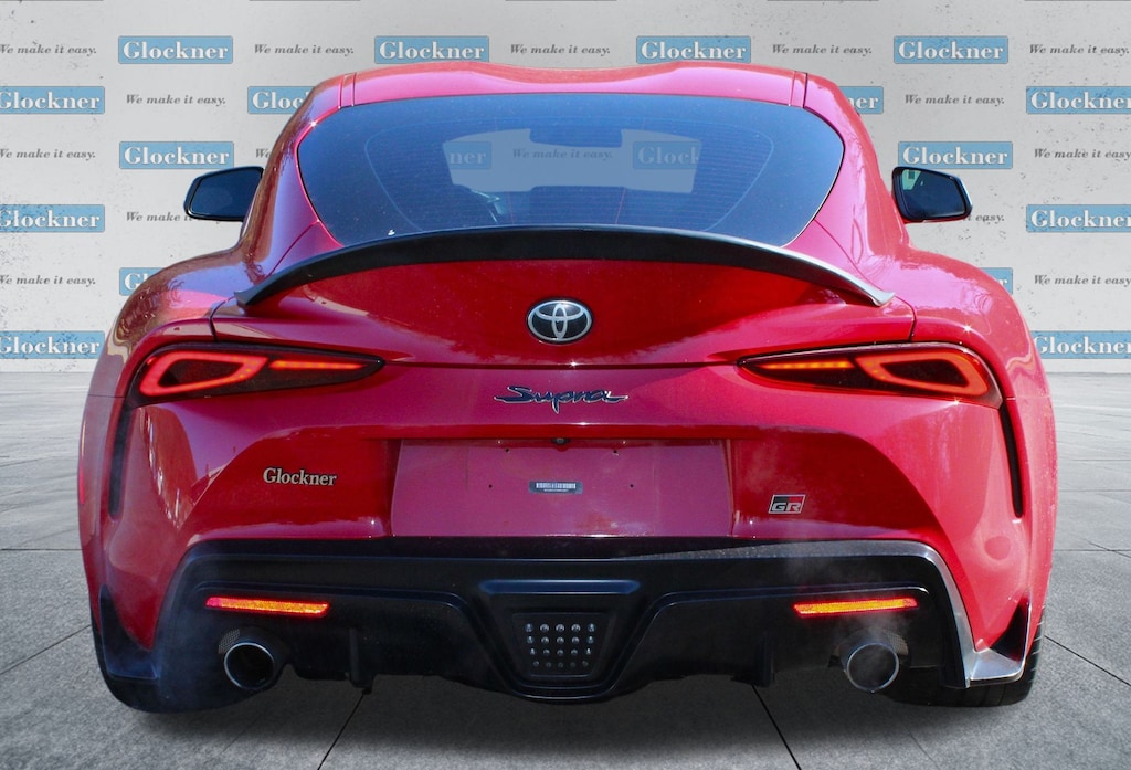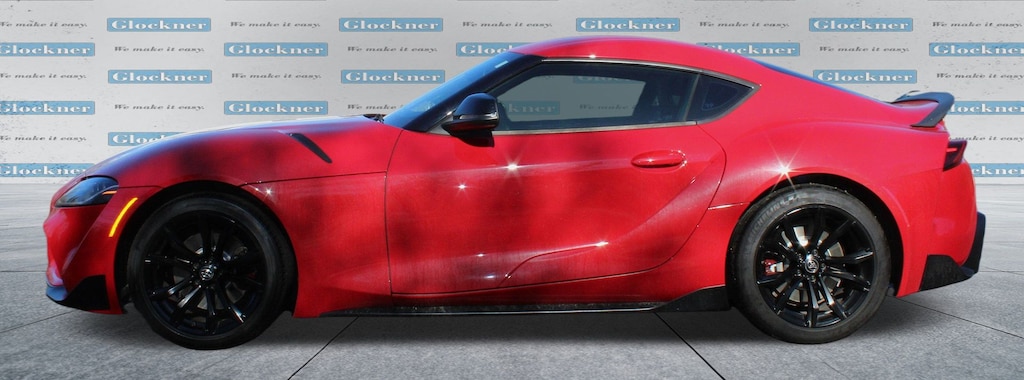 Glockner Honda Toyota is proud to offer this superb 2021 Toyota Supra in Renaissance Red 2.0. This 2021 Toyota Supra has passed our comprehensive inspection and comes with the following features; Alcantara/Leather Seat Trim, AM/FM radio: SiriusXM, Automatic temperature control, Exterior Parking Camera Rear, Power driver seat, Wheels: 18" Cast Aluminum, 4 Speakers, 4-Wheel Disc Brakes, ABS brakes, Air Conditioning, Alloy wheels, AM/FM Stereo w/4 Speakers, Auto High-beam Headlights, Auto-dimming door mirrors, Auto-dimming Rear-View mirror, Brake assist, Bumpers: body-color, Child-Seat-Sensing Airbag, Delay-off headlights, Driver door bin, Driver vanity mirror, Dual front impact airbags, Dual front side impact airbags, Electronic Stability Control, Four wheel independent suspension, Front anti-roll bar, Front Bucket Seats, Front Center Armrest, Front dual zone A/C, Front fog lights, Front reading lights, Front Sport Seats, Fully automatic headlights, Garage door transmitter: HomeLink, Heated door mirrors, Illuminated entry, Knee airbag, Leather Shift Knob, Leather steering wheel, Low tire pressure warning, Occupant sensing airbag, Outside temperature display, Overhead airbag, Panic alarm, Passenger door bin, Passenger vanity mirror, Power door mirrors, Power passenger seat, Power steering, Power windows, Radio data system, Rain sensing wipers, Rear anti-roll bar, Rear window defroster, Remote keyless entry, Security system, Speed control, Speed-sensing steering, Speed-Sensitive Wipers, Steering wheel mounted audio controls, Tachometer, Telescoping steering wheel, Tilt steering wheel, Traction control, Trip computer, Turn signal indicator mirrors, and Variably intermittent wipers.