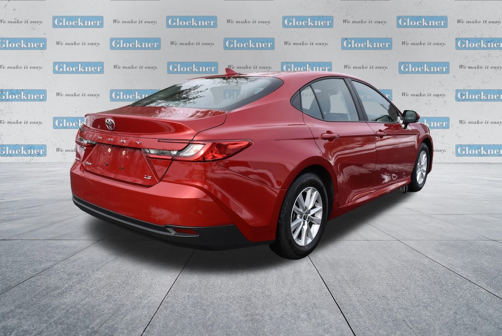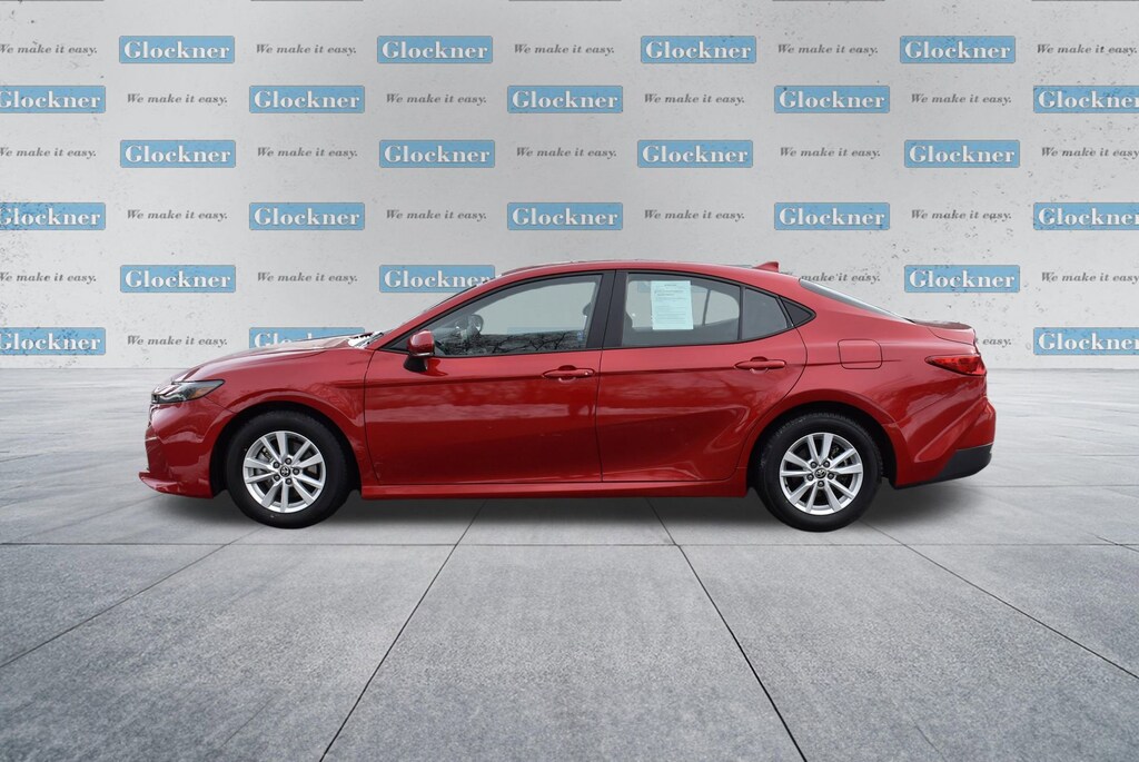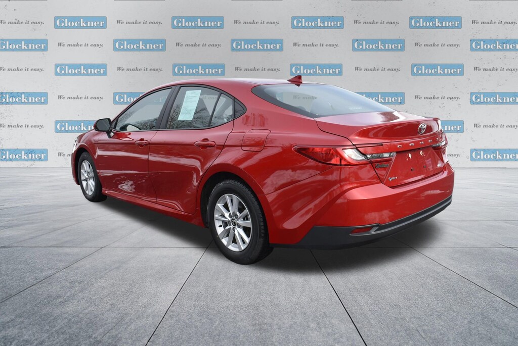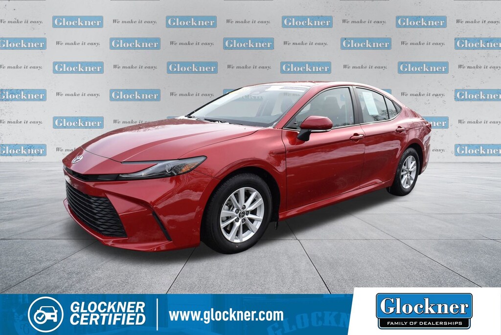 Certified. Certification Program Details: 12 Months or 12,000 miles Comprehensive Warranty. 5 Years or 100,000 miles Powertrain Warranty.Glockner of Ironton is proud to offer this charming-looking 2025 Toyota Camry in Supersonic Red. This 2025 Toyota Camry has passed our comprehensive inspection and comes with the following features; Glockner Certified Certified, 2.5L 4-Cylinder 16V DOHC, Black w/Fabric Seat Trim, ABS brakes, Active Cruise Control, Alloy wheels, Electronic Stability Control, Front dual zone A/C, Heated door mirrors, Illuminated entry, Low tire pressure warning, Remote keyless entry, Traction control, 4-Wheel Disc Brakes, 6 Speakers, Air Conditioning, AM/FM radio: SiriusXM, Apple CarPlay/Android Auto, Auto High-beam Headlights, Automatic temperature control, Brake assist, Bumpers: body-color, Delay-off headlights, Driver door bin, Driver vanity mirror, Dual front impact airbags, Dual front side impact airbags, Emergency communication system: Safety Connect (up to 10-year trial subscription), Exterior Parking Camera Rear, Fabric Seat Trim, Four wheel independent suspension, Front anti-roll bar, Front Bucket Seats, Front Center Armrest, Front reading lights, Fully automatic headlights, Knee airbag, Occupant sensing airbag, Outside temperature display, Overhead airbag, Overhead console, Panic alarm, Passenger door bin, Passenger vanity mirror, Power door mirrors, Power steering, Power windows, Radio data system, Radio: Toyota Audio Multimedia w/8 Touchscreen, Rear anti-roll bar, Rear seat center armrest, Rear side impact airbag, Rear window defroster, Security system, Speed control, Speed-sensing steering, Split folding rear seat, Steering wheel mounted audio controls, Telescoping steering wheel, Tilt steering wheel, Trip computer, Turn signal indicator mirrors, Variably intermittent wipers, and Wheels: 16 Silver-Finished Alloy.2.5L 4-Cylinder 16V DOHC, Black w/Fabric Seat Trim, ABS brakes, Active Cruise Control, Alloy wheels, Electronic Stability Control, Front dual zone A/C, Heated door mirrors, Illuminated entry, Low tire pressure warning, Remote keyless entry, Traction control.Odometer is 1024 miles below market average!