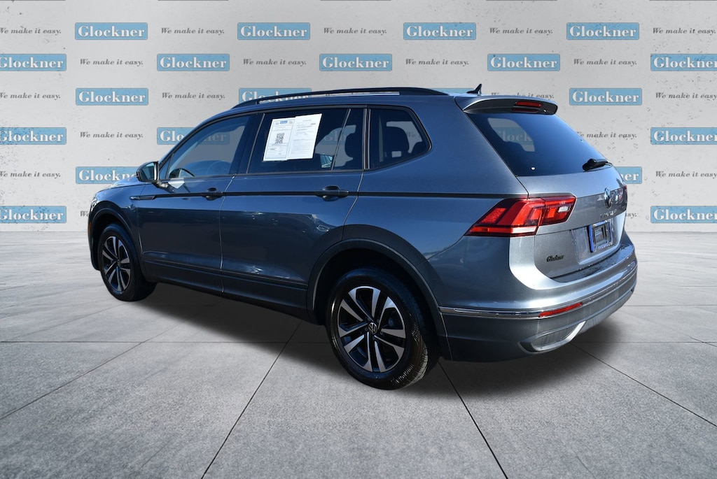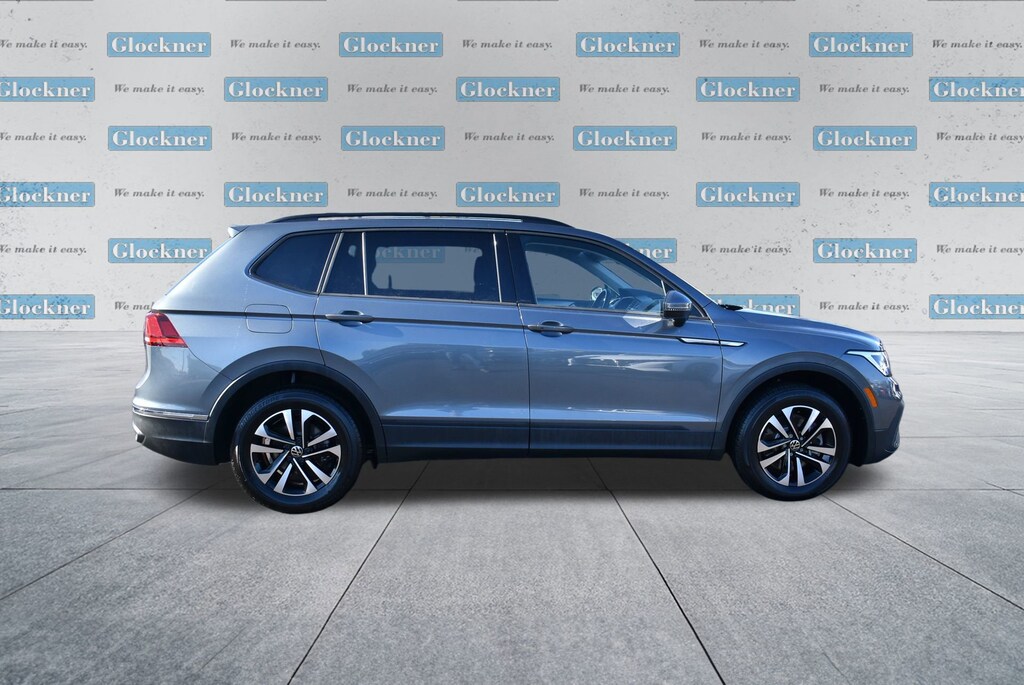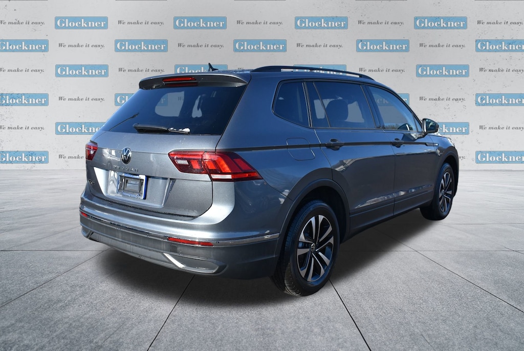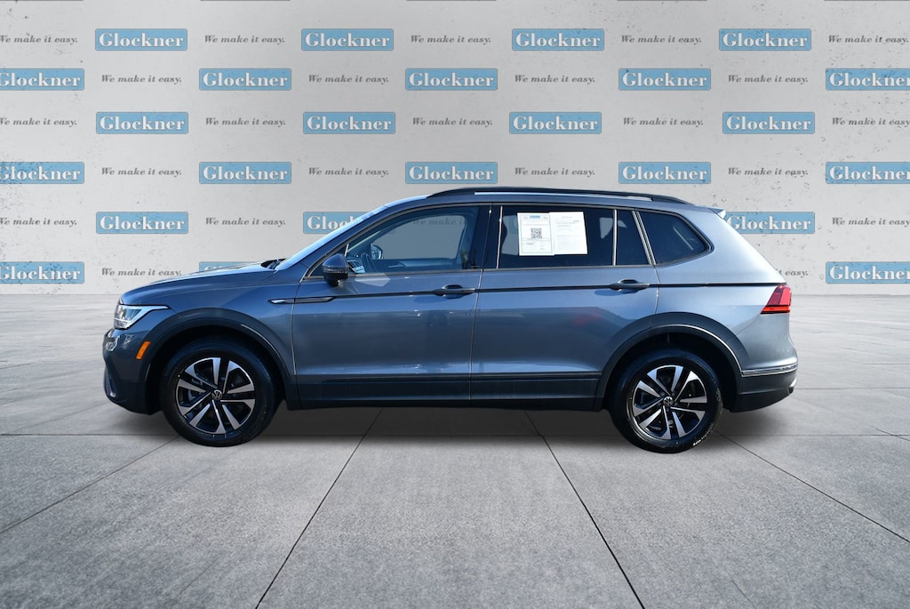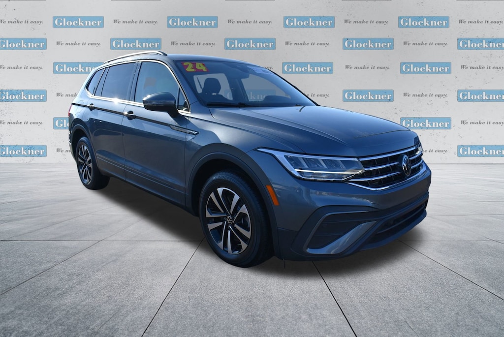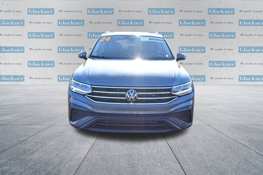 Glockner of Ironton is proud to offer this superb 2024 Volkswagen Tiguan in Platinum Gray Metallic. This 2024 Volkswagen Tiguan has passed our comprehensive inspection and comes with the following features; Glockner Certified Certified, 3.33 Axle Ratio, 3rd row seats: bench, 4-Wheel Disc Brakes, 4-Wheel Independent Suspension, 6 Speakers, ABS brakes, Air Conditioning, Alloy wheels, AM/FM radio, Brake assist, Bumpers: body-color, Cloth Seating Surfaces, Compass, Delay-off headlights, Driver door bin, Driver vanity mirror, Dual front impact airbags, Dual front side impact airbags, Electronic Stability Control, Emergency communication system: VW Car-Net Safe & Secure 5-year, Exterior Parking Camera Rear, Four wheel independent suspension, Front anti-roll bar, Front Bucket Seats, Front Center Armrest, Front reading lights, Fully automatic headlights, Heated door mirrors, Heated Front Seats, Heated front seats, Illuminated entry, Leather Shift Knob, Low tire pressure warning, Occupant sensing airbag, Outside temperature display, Overhead airbag, Overhead console, Panic alarm, Passenger door bin, Passenger vanity mirror, Power door mirrors, Power steering, Power windows, Radio data system, Rain sensing wipers, Rear anti-roll bar, Rear reading lights, Rear seat center armrest, Rear window defroster, Rear window wiper, Remote keyless entry, Speed control, Speed-sensing steering, Split folding rear seat, Spoiler, Steering wheel mounted audio controls, Tachometer, Telescoping steering wheel, Tilt steering wheel, Traction control, Trip computer, Turn signal indicator mirrors, Variably intermittent wipers, and Wheels: 17 2-Tone Machined Twin 5-Spoke Alloy.